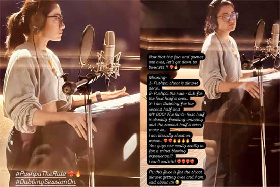 In a recent Instagram Story, Rashmika shared thrilling news, revealing that she has completed dubbing for the first half of the movie and is now working on the second half. Enthusiastically, she wrote, “MY GOD! The film’s first half is already freaking amazing, and the second half is even more so… I am literally short on words. You guys are really, really in for a mind-blowing experience!” She also included a few snaps from her dubbing session, sparking even more anticipation.