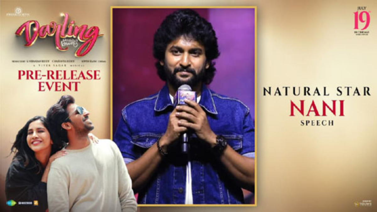 Hero Nani was the chief guest at the pre-release event for Nabha Natesh and Priyadarshi’s upcoming comedy film, “Darling.” In a heartfelt speech, the “Saripodhaa Sanivaaram” actor expressed his hopes for “Darling” to become a massive hit like “Hanu-Man,” both of which were produced by Niranjan Reddy.