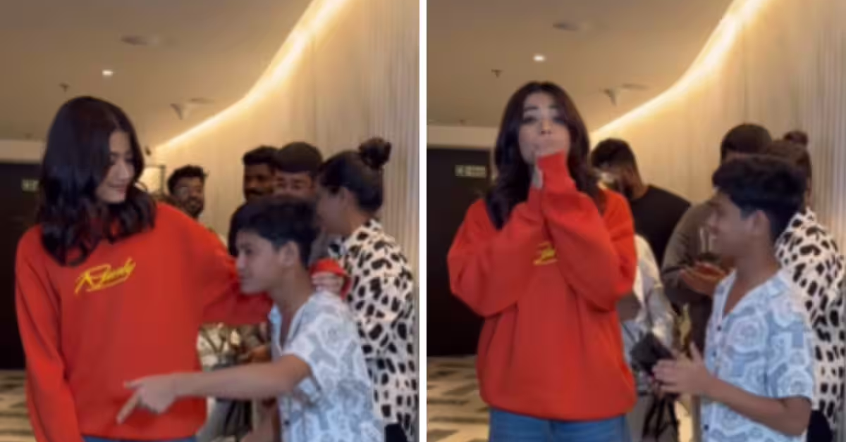 Rashmika Mandanna, despite her busy schedule, always makes time for her fans, especially the younger ones. A heartwarming video of the Pushpa actress interacting with a young boy has recently gone viral. The boy, eager to take a video with her, surprised Rashmika by spontaneously beatboxing. Clearly impressed by his talent, Rashmika couldn’t help but applaud him.